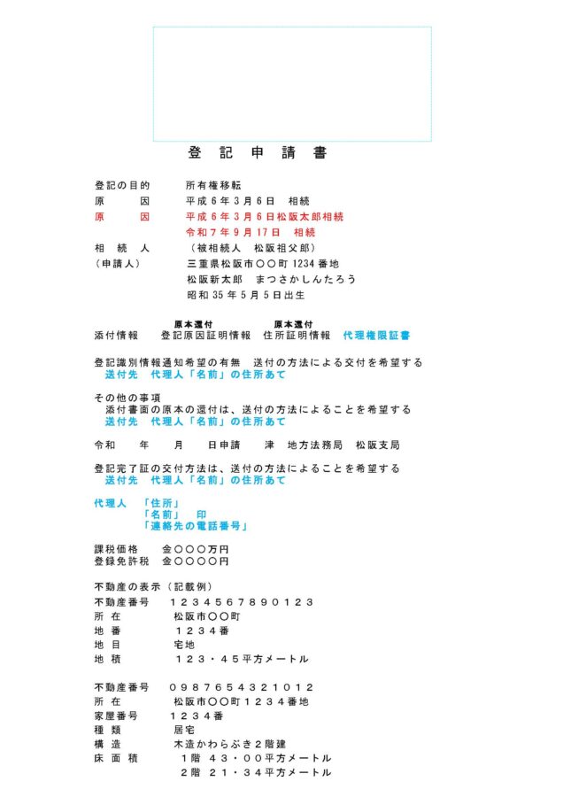 次に不動産の課税価格と登録免許税、不動産の詳細を記載します。