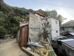 鳥羽の離島「答志島」で木造2階建て倉庫の解体工事